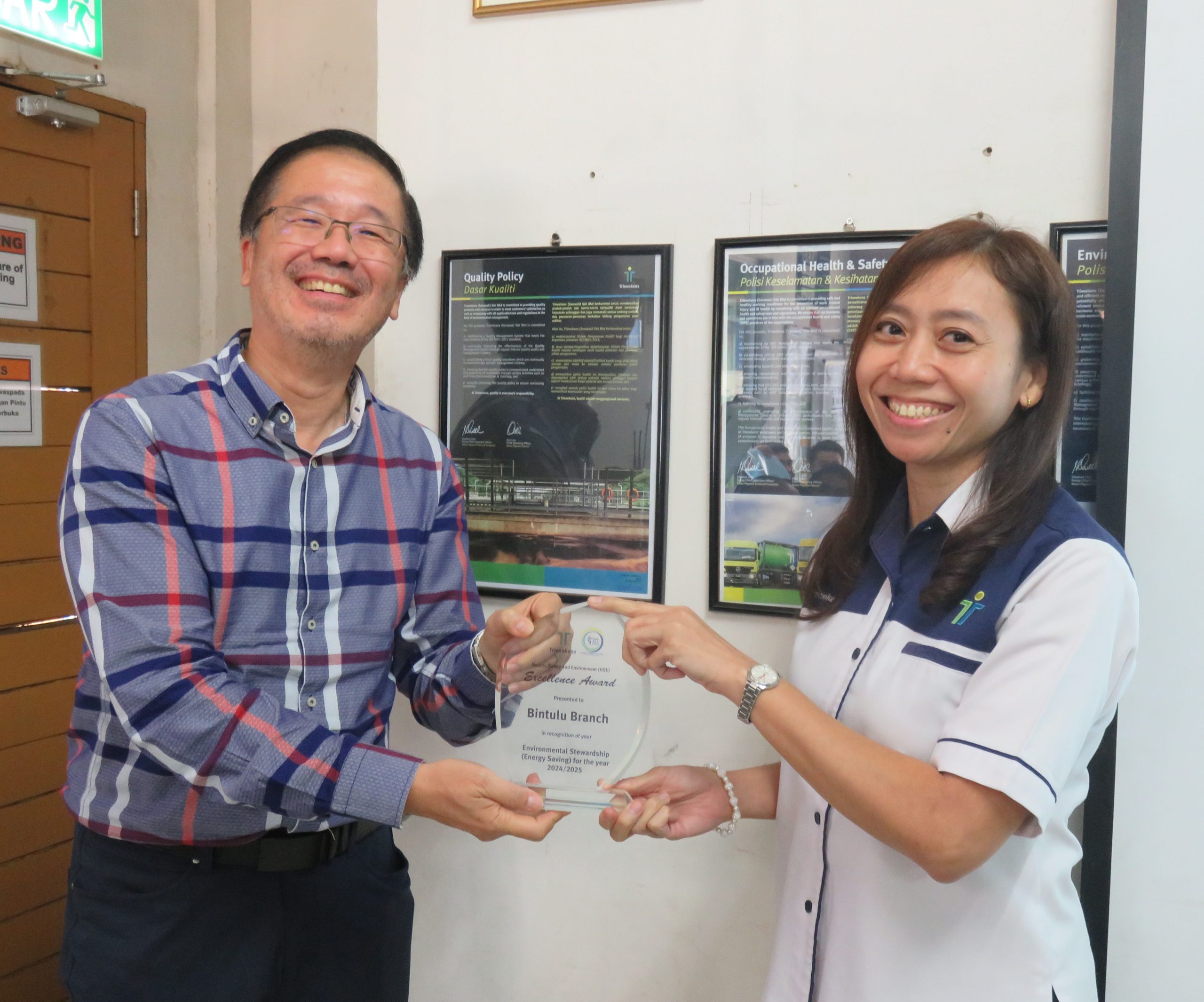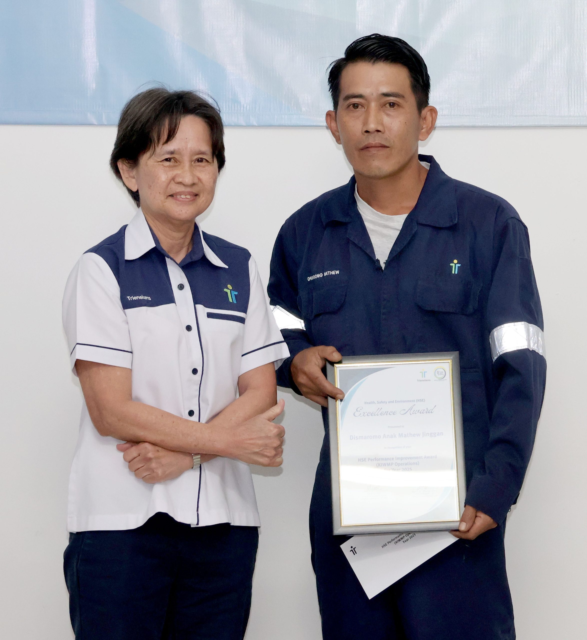 Trienekens Bintulu Branch was recognised as this year’s recipient of the HSE Excellence Award for Environmental Stewardship (Energy Saving) 2024/2025. Group CEO Stephen Chin presenting the special award to Patricia.