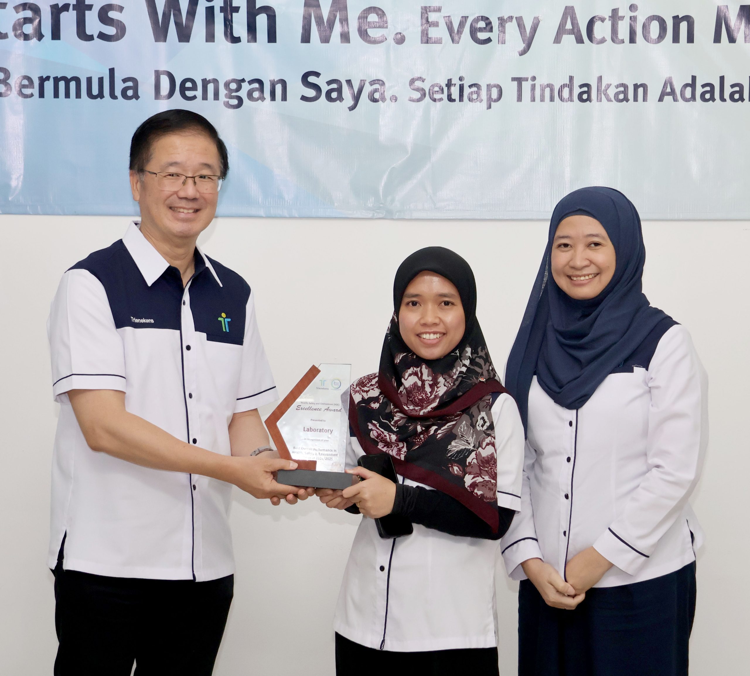 Trienekens Laboratory was accorded the HSE Excellence Award for Best Overall Performance 2024/2025. Stephen presenting the award to Division Manager for Environment R&D, Dyg Sherrynazra and Chemist, Normawati bt Jasni.